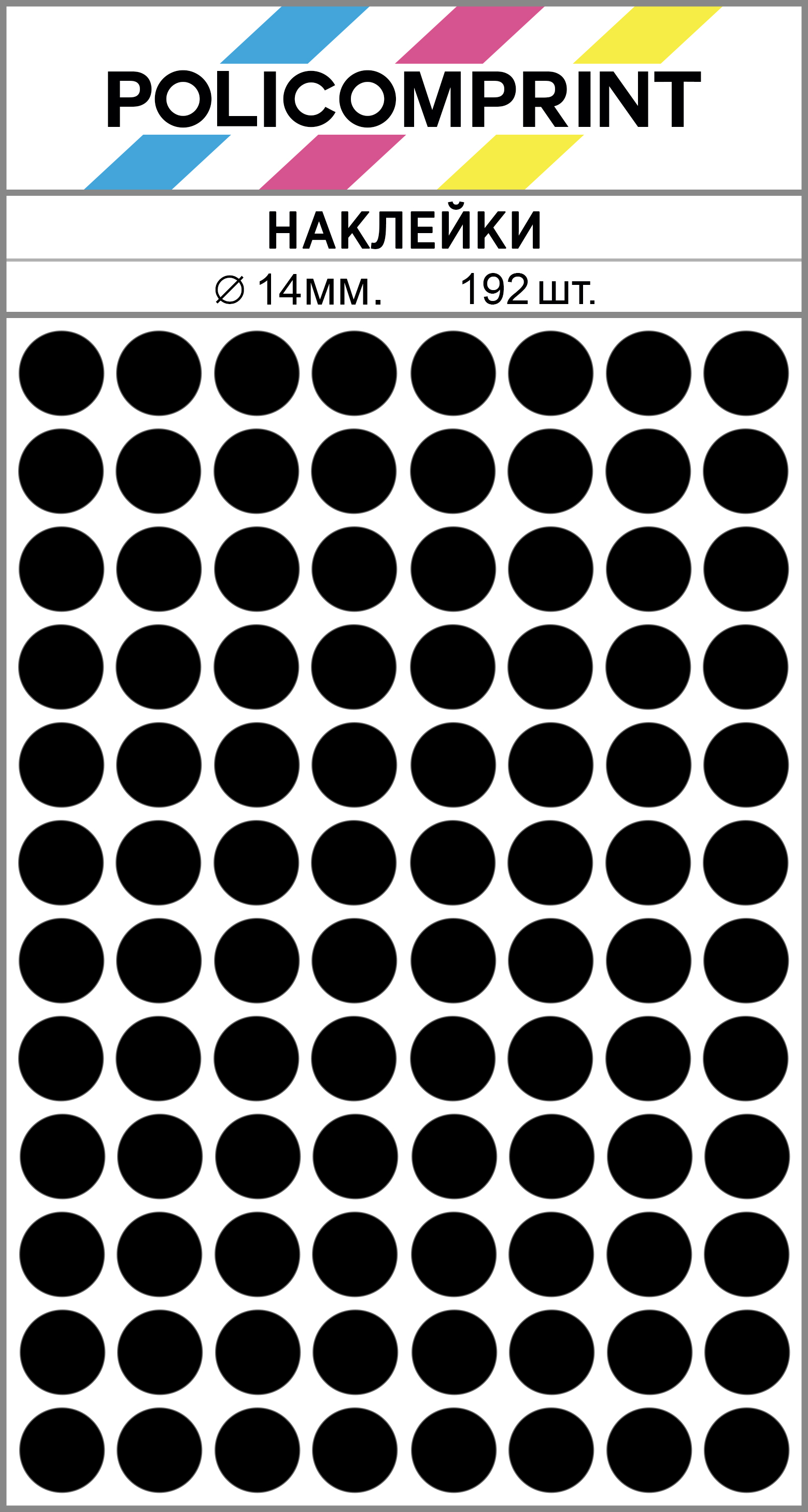 Черные виниловые наклейки для упаковки и маркировки Policomprint M3, 14 мм. 192 шт.