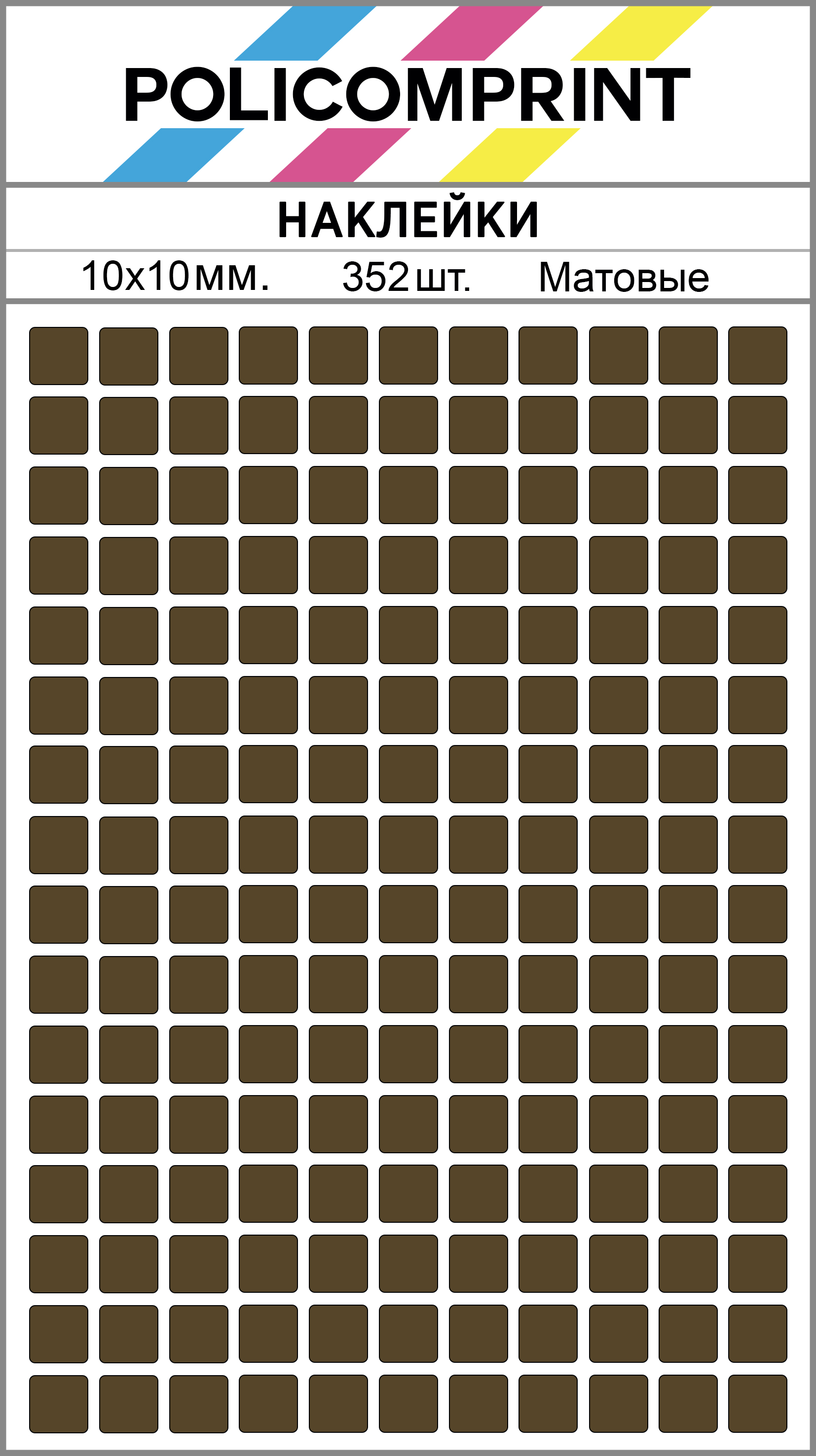 Благодаря своим ярким цветам, наклейки Policomprint легко заметны. Они изготовлены из качественных материалов, что обеспечивает их долговечность и устойчивость к износу.