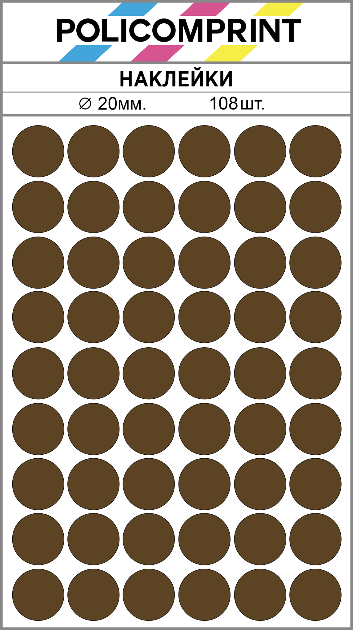 Наклейки Policomprint предназначены для маркировки, организации, планирования и хранения. В упаковке вы найдете 108 круглых маркировочных наклеек диаметром 20 мм., которые помогут вам быстро и легко организовать свои вещи.