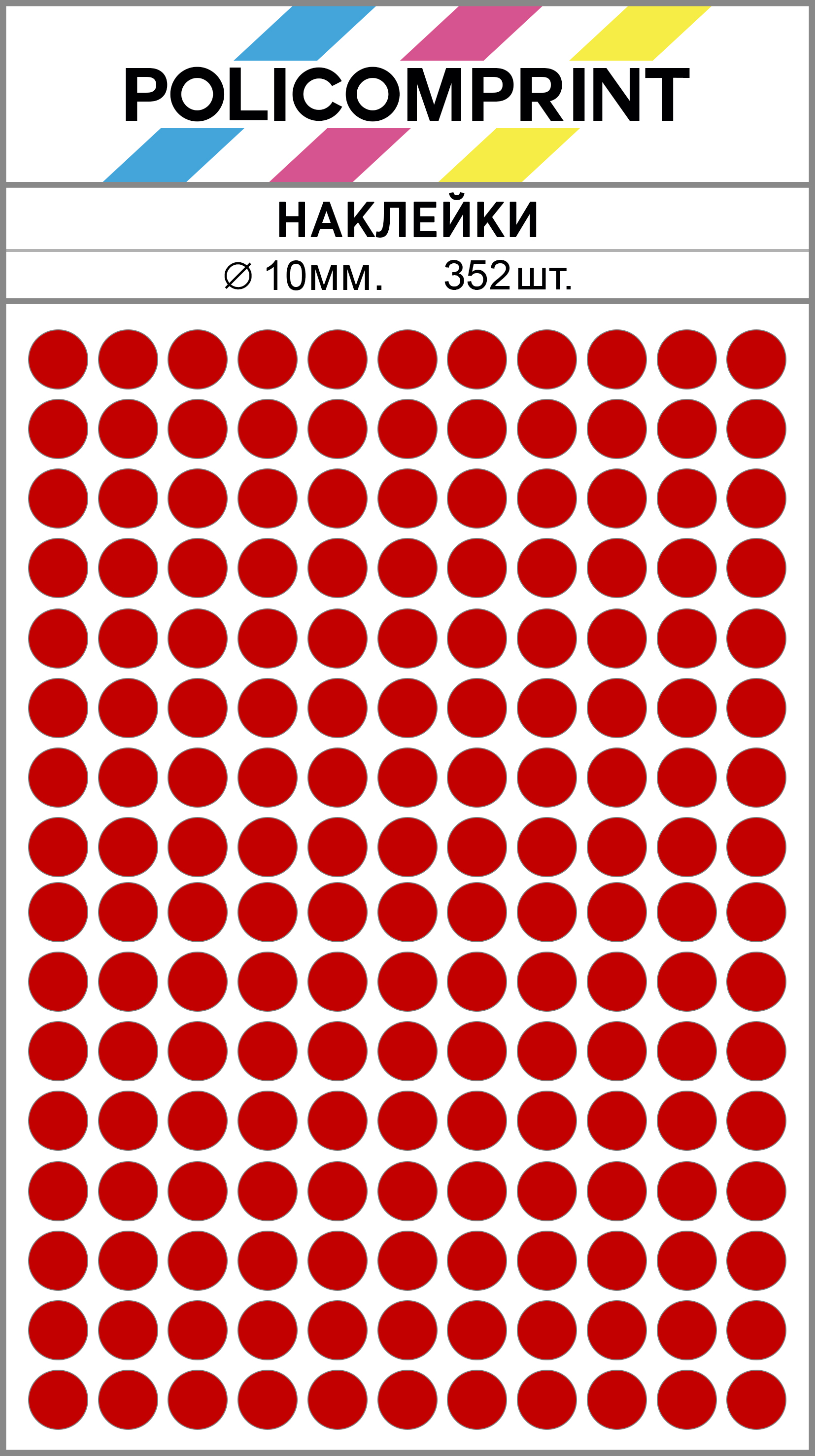 Наклейки Policomprint предназначены для маркировки, организации, планирования и хранения. В упаковке вы найдете 352 круглых маркировочных наклеек диаметром 10 мм., которые помогут вам быстро и легко организовать свои вещи.