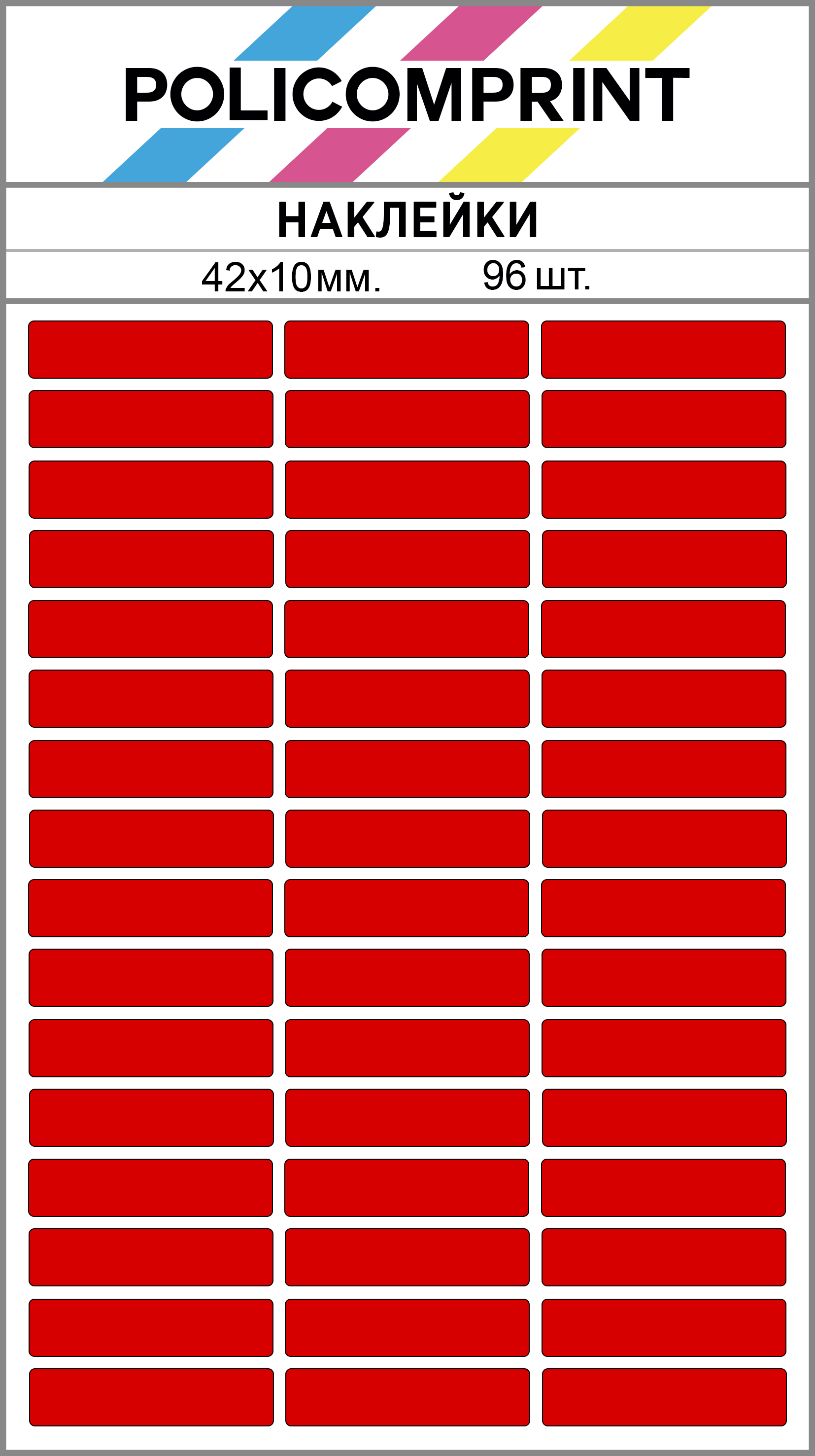 Красные виниловые наклейки для маркировки Policomprint М13, 42х10 мм. 96 шт. Глянец.