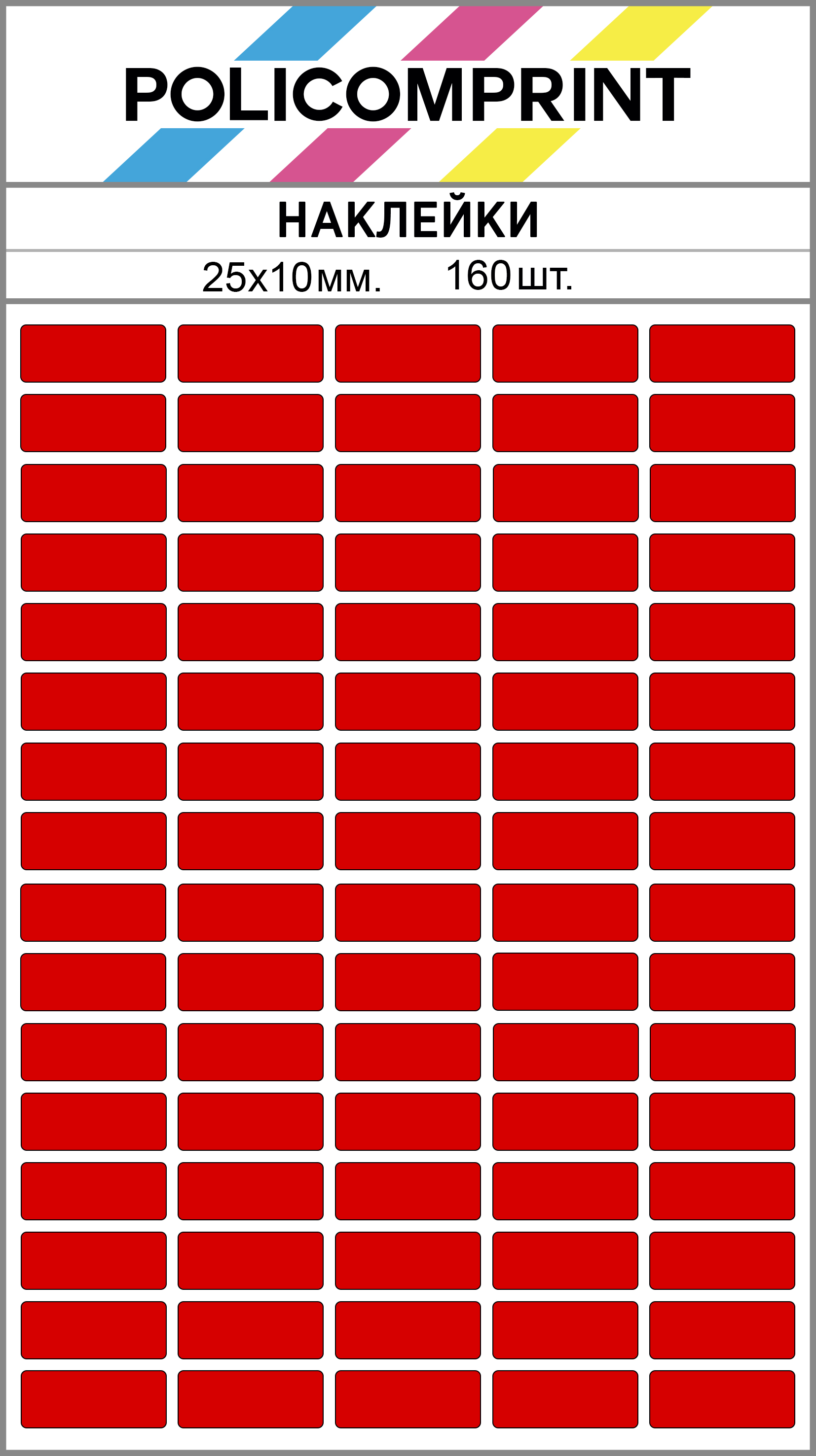 Красные виниловые наклейки для маркировки Policomprint М8, 25х10 мм. 160 шт. Глянец.