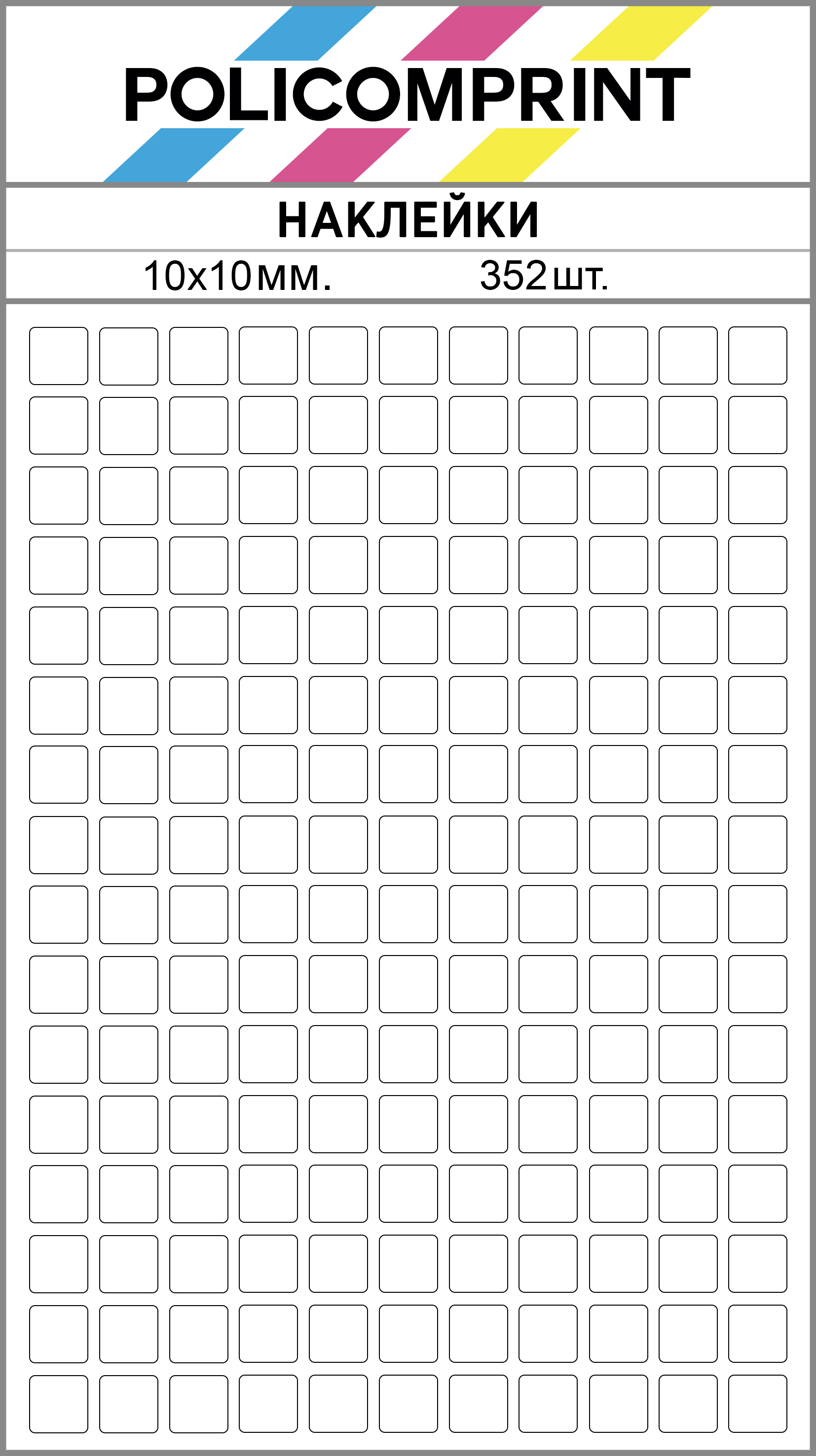 Белые виниловые наклейки для маркировки Policomprint М14, 10х10 мм. 352 шт.