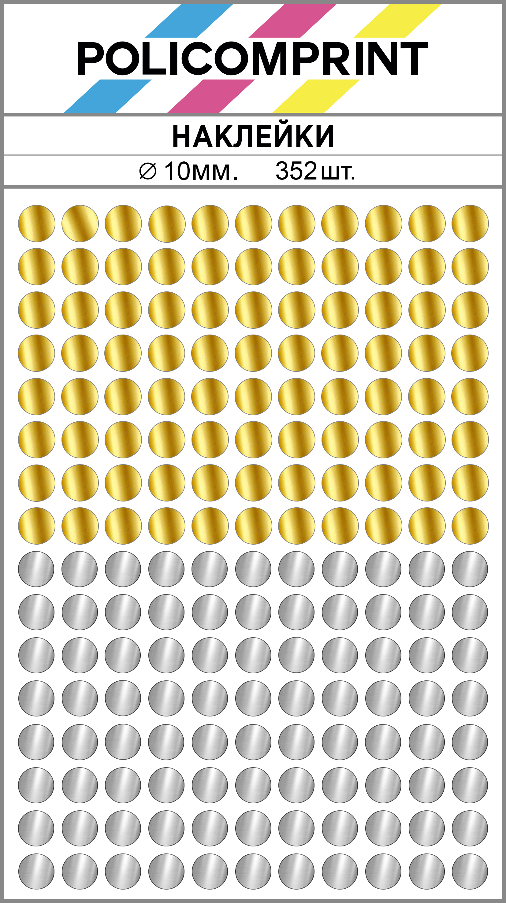 Благодаря своим ярким цветам, наклейки Policomprint легко заметны. Они изготовлены из качественных материалов, что обеспечивает их долговечность и устойчивость к износу.