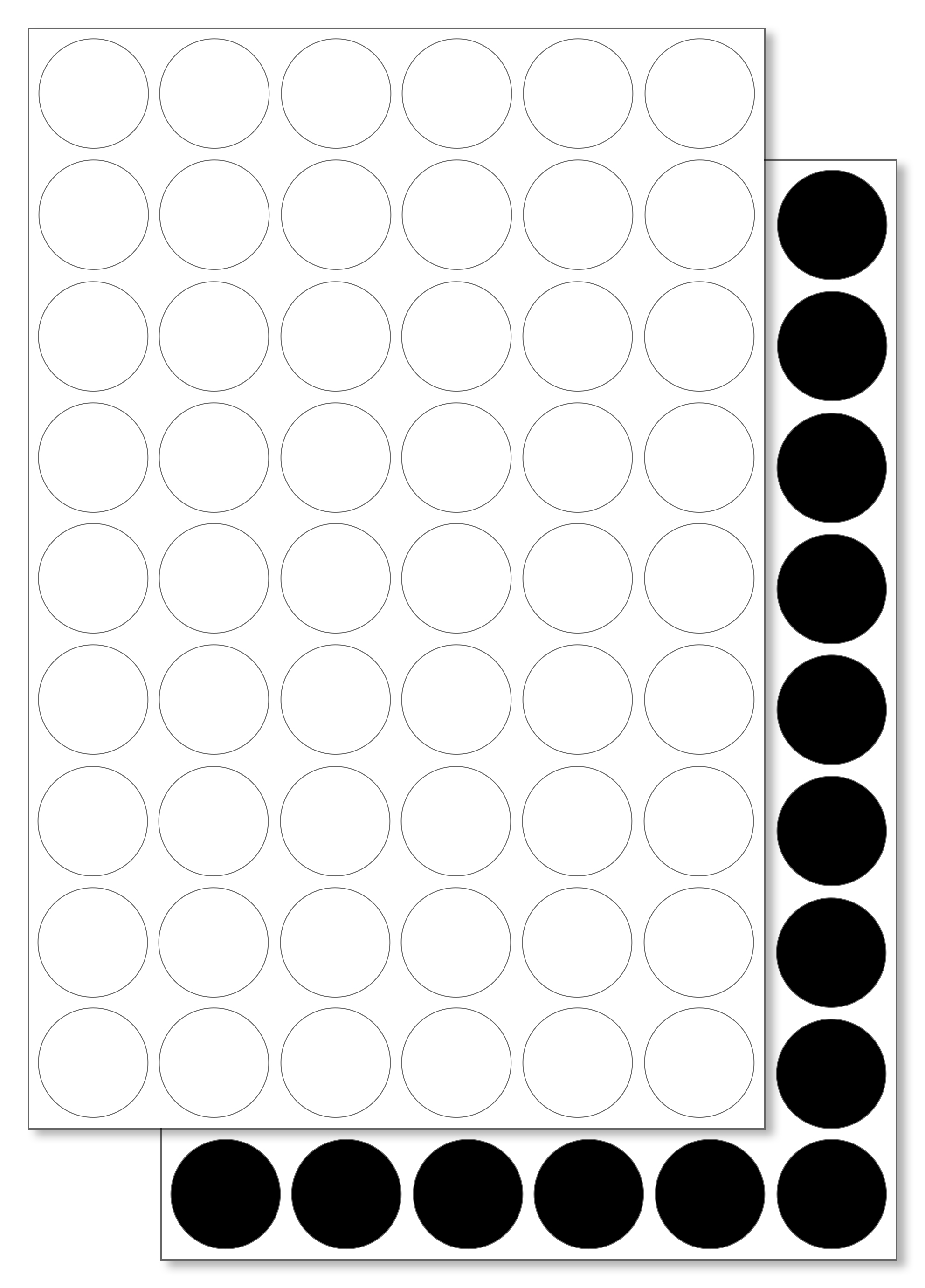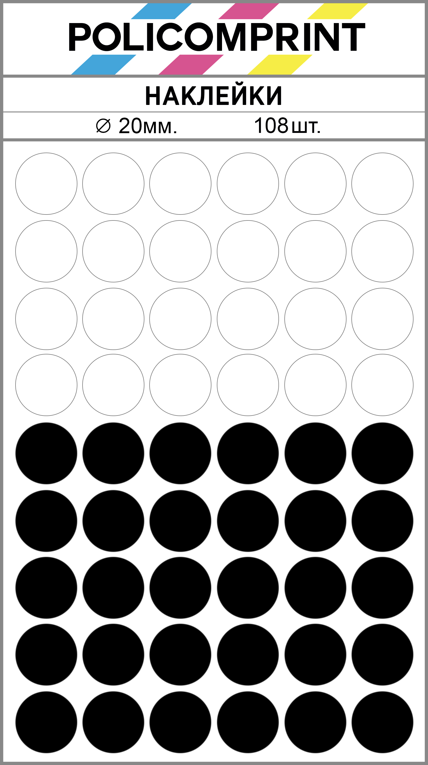 Наклейки Policomprint предназначены для маркировки, организации, планирования и хранения. В упаковке вы найдете 54 белых и 54 черных маркировочных круга диаметром 20 мм, которые помогут вам быстро и легко организовать свои вещи.