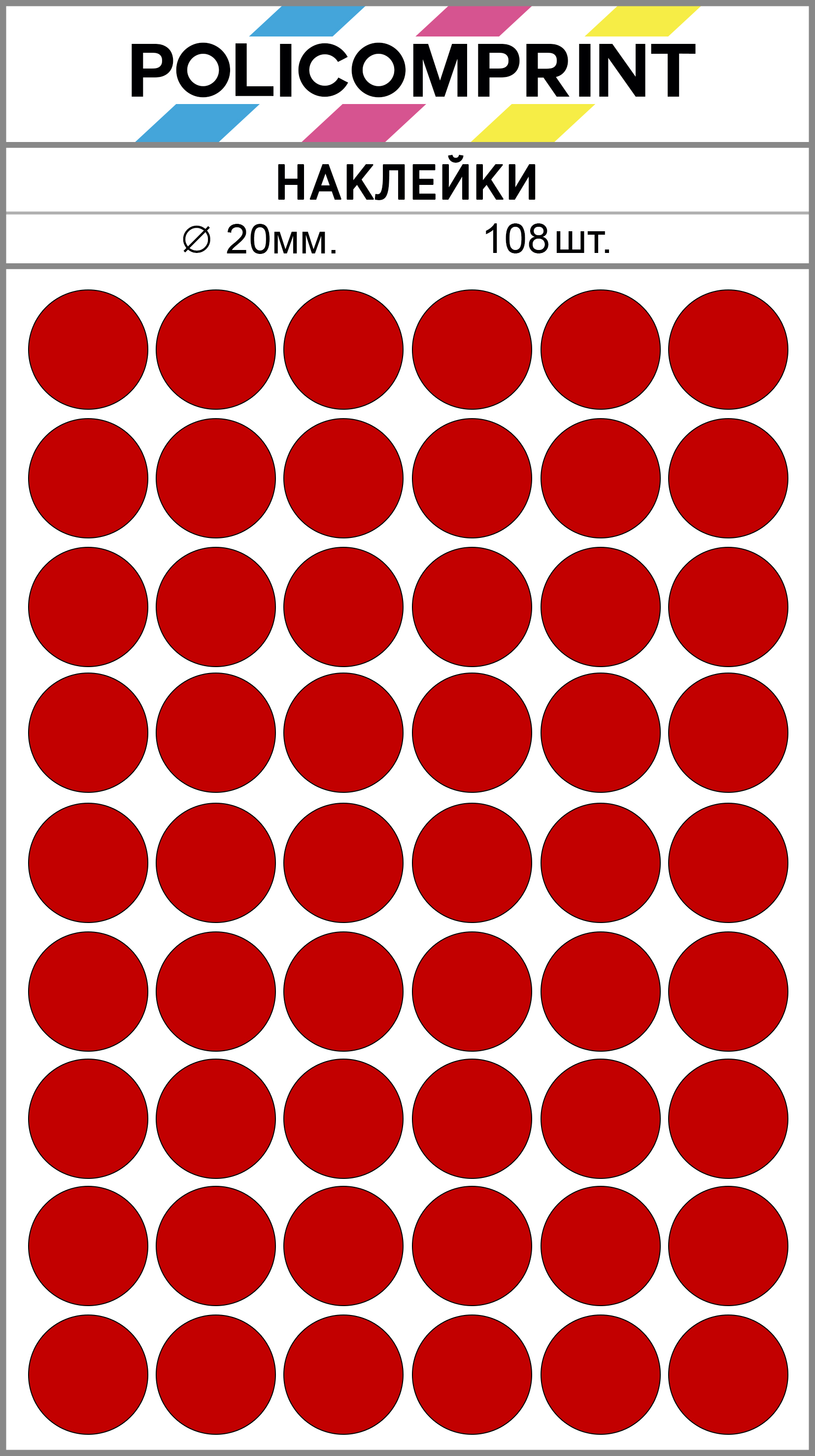 Благодаря своим ярким цветам, наклейки Policomprint легко заметны. Они изготовлены из качественных материалов, что обеспечивает их долговечность и устойчивость к износу.