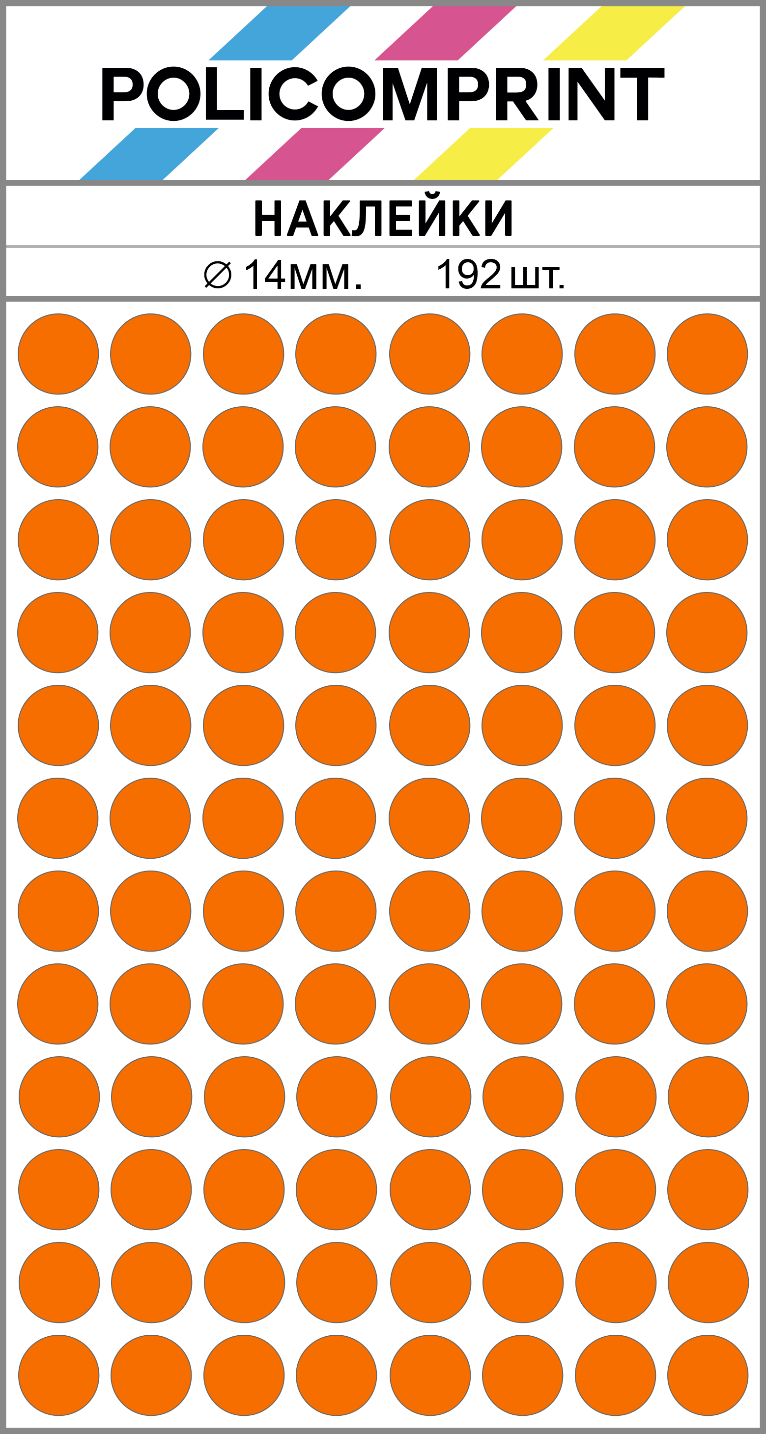 Оранжевые виниловые наклейки для упаковки и маркировки Policomprint M3, 14 мм. 192 шт.