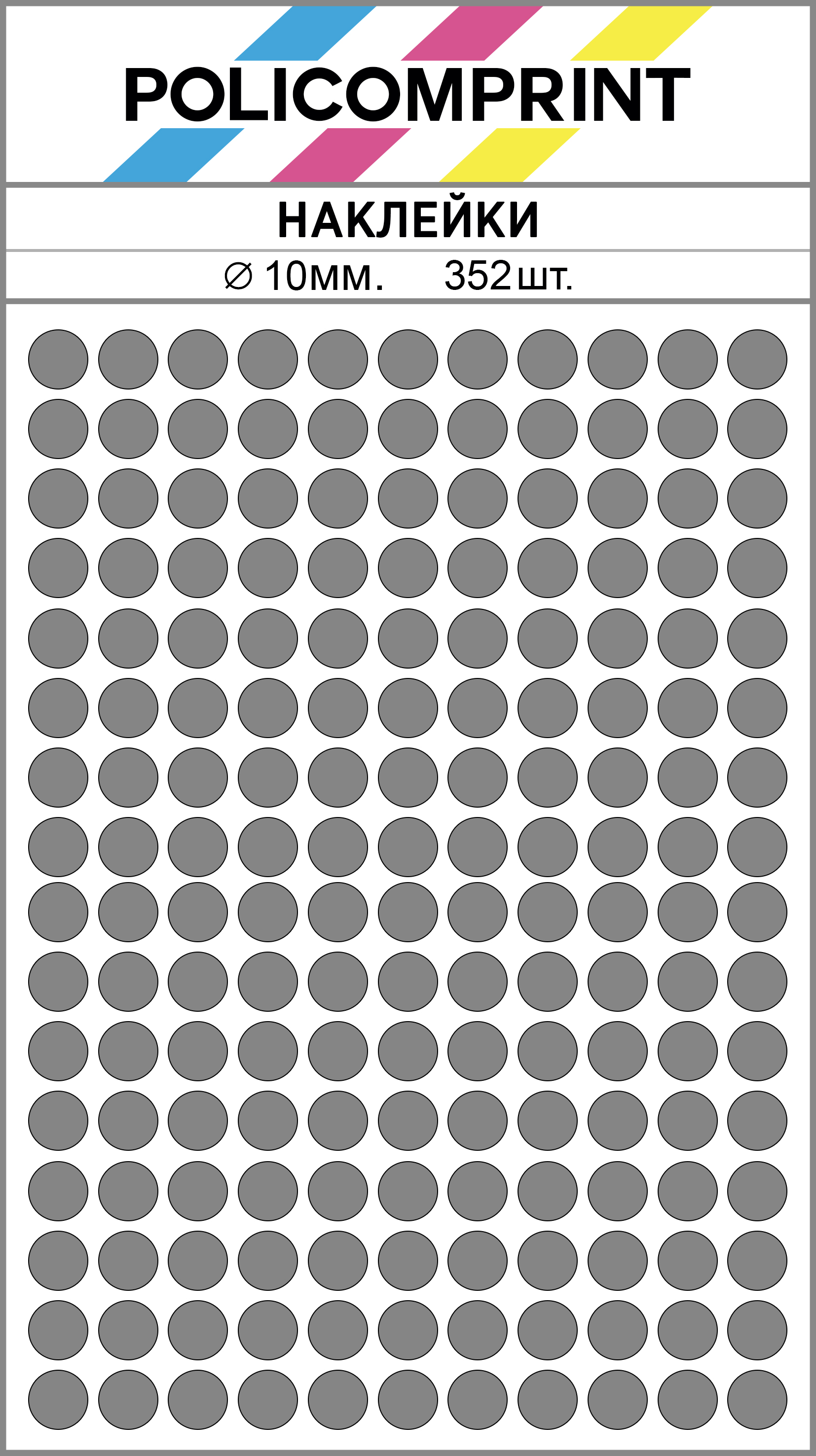 Наклейки Policomprint предназначены для маркировки, организации, планирования и хранения. В упаковке вы найдете 352 маркировочных круга диаметром 10 мм., которые помогут вам быстро и легко организовать свои вещи.