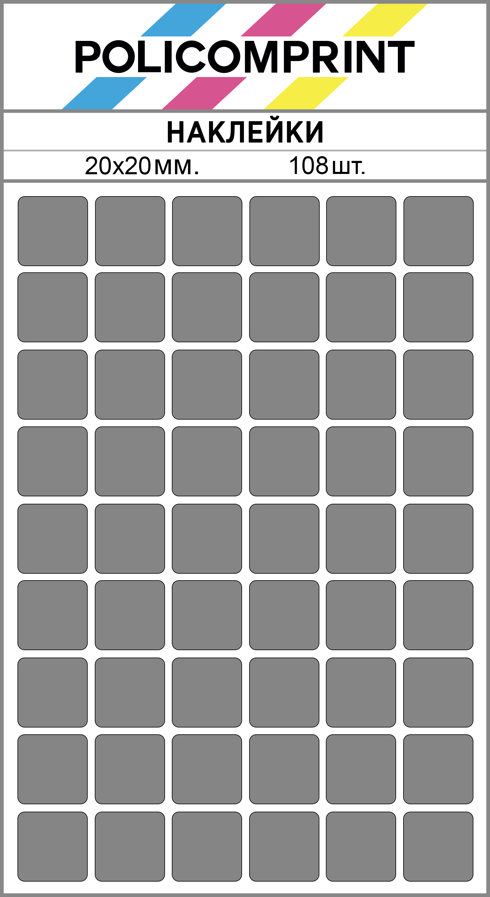 Наклейки Policomprint предназначены для маркировки, организации, планирования и хранения. В упаковке вы найдете 108 квадратных наклеек размером 20х20 мм., которые помогут вам быстро и легко организовать свои вещи.