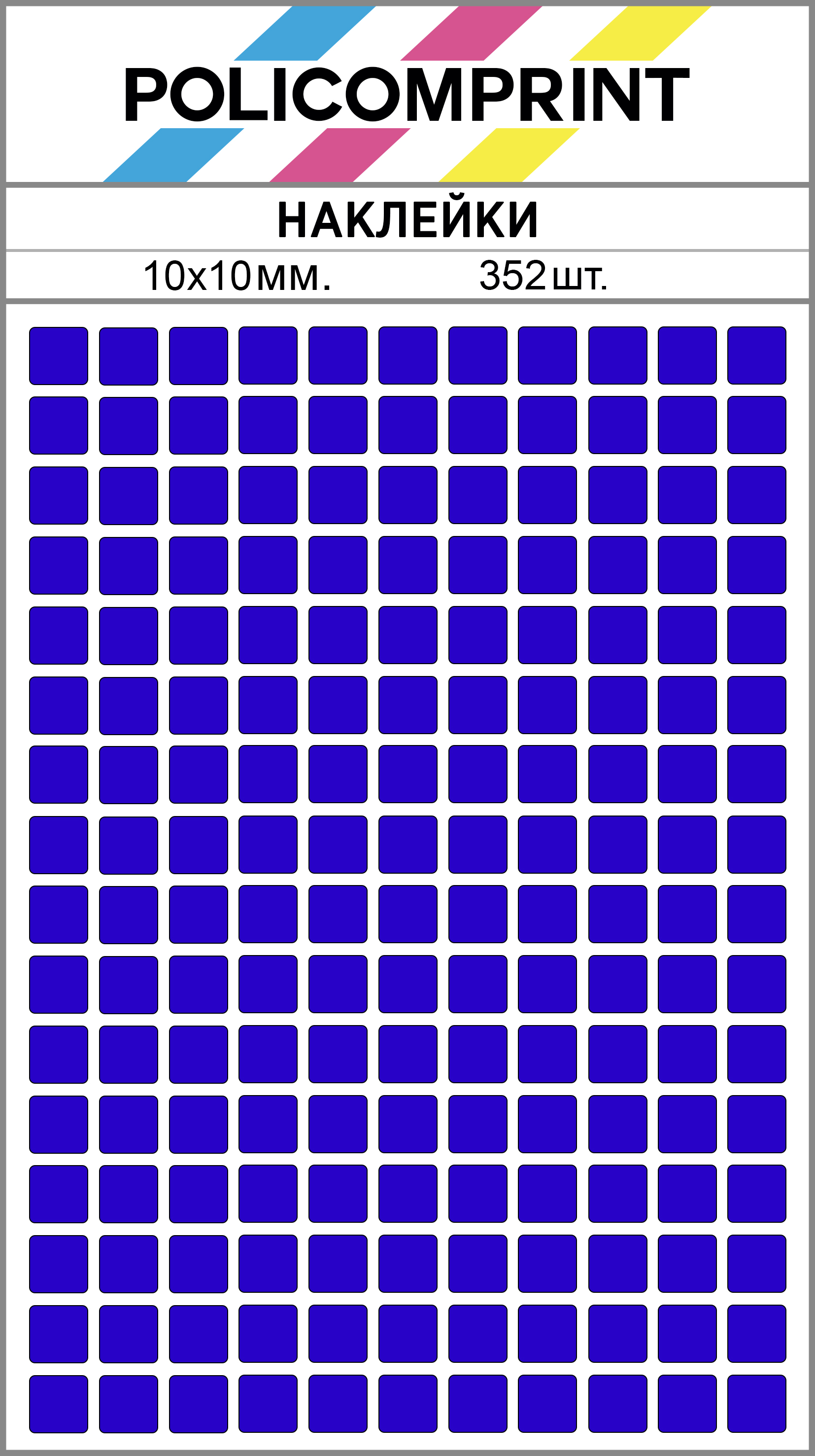 Синие квадратные виниловые наклейки для маркировки Policomprint М14, 10х10 мм. 352 шт.