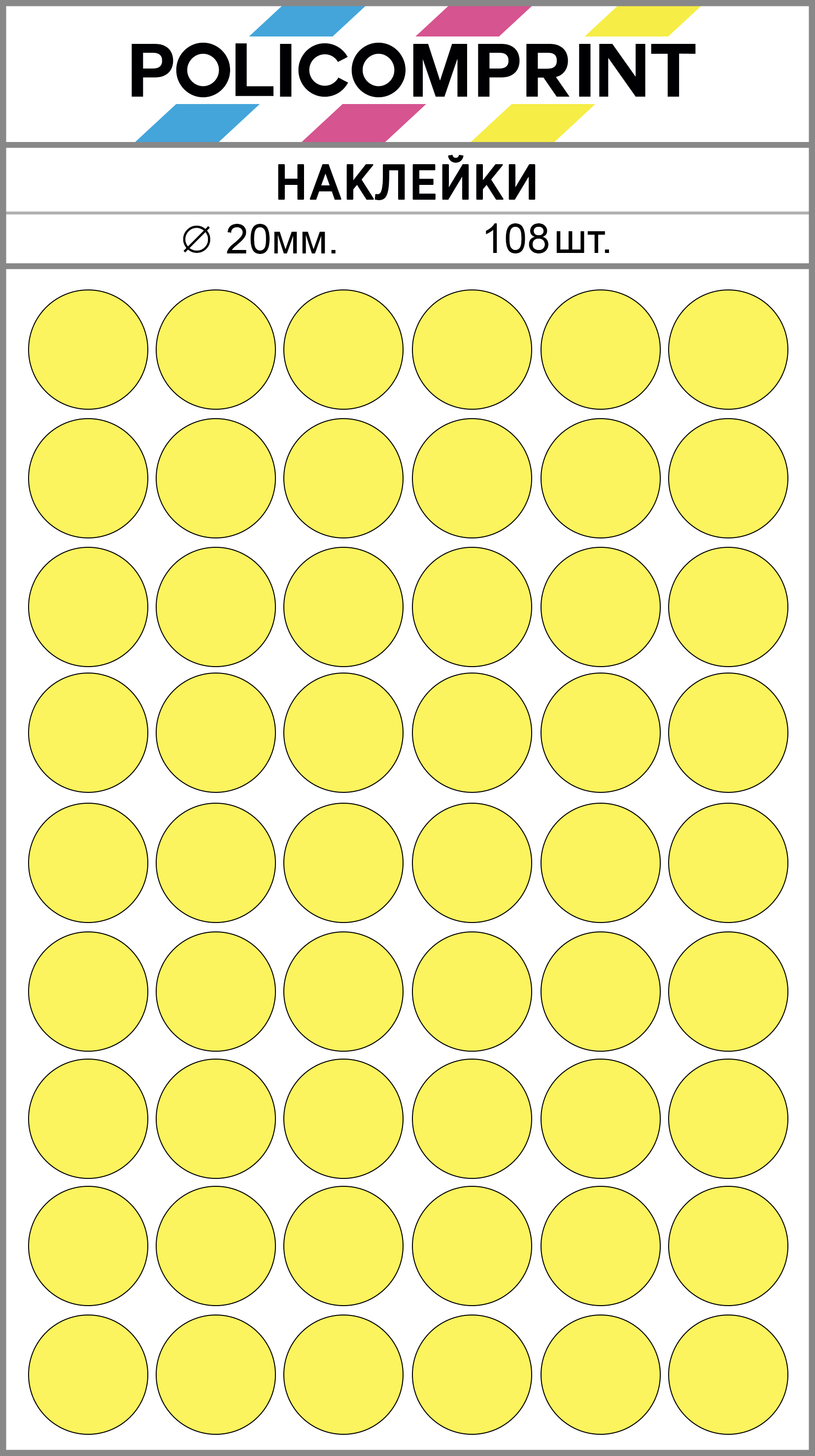 Благодаря своим ярким цветам, наклейки Policomprint легко заметны. Они изготовлены из качественных материалов, что обеспечивает их долговечность и устойчивость к износу.