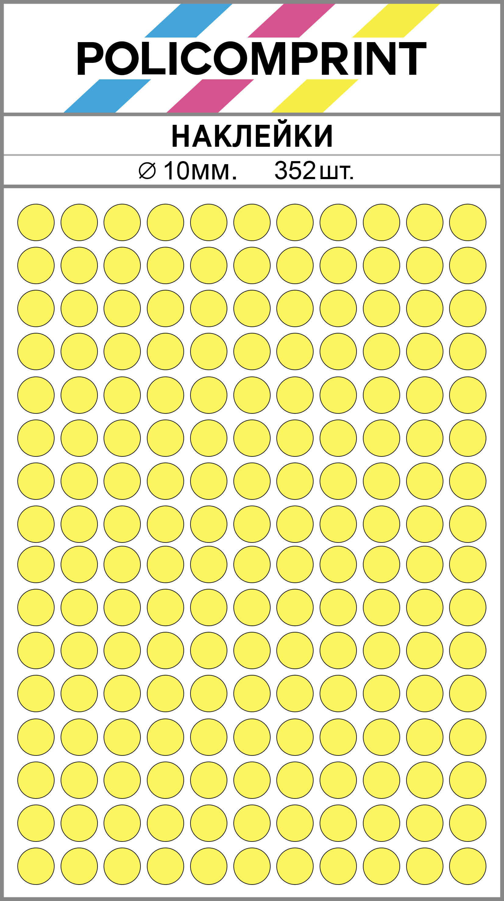 Наклейки Policomprint предназначены для маркировки, организации, планирования и хранения. В упаковке вы найдете 352 маркировочных круга диаметром 10 мм., которые помогут вам быстро и легко организовать свои вещи.