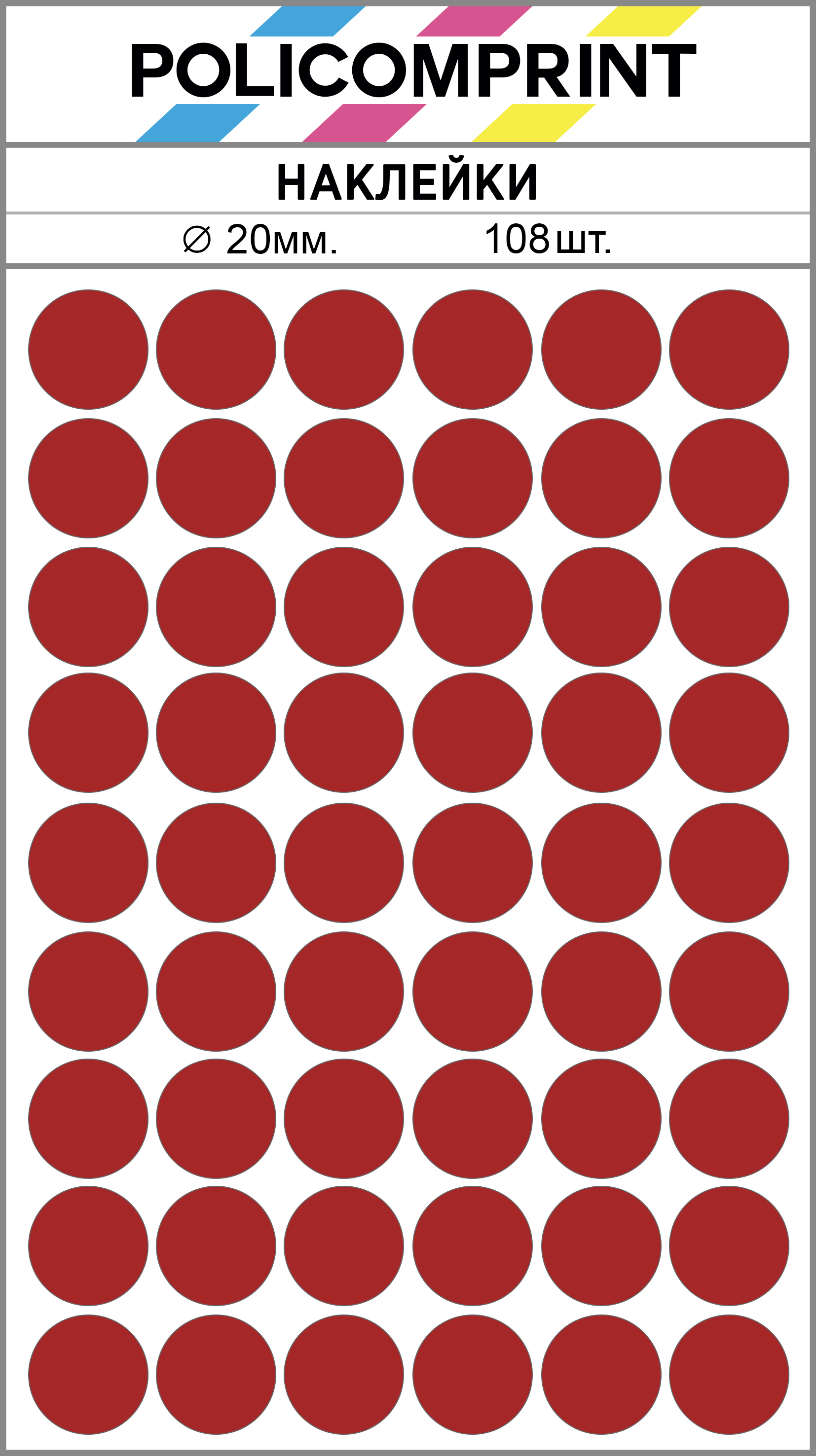 Наклейки Policomprint предназначены для маркировки, организации, планирования и хранения. В упаковке вы найдете 108 круглых маркировочных наклеек диаметром 20 мм., которые помогут вам быстро и легко организовать свои вещи.