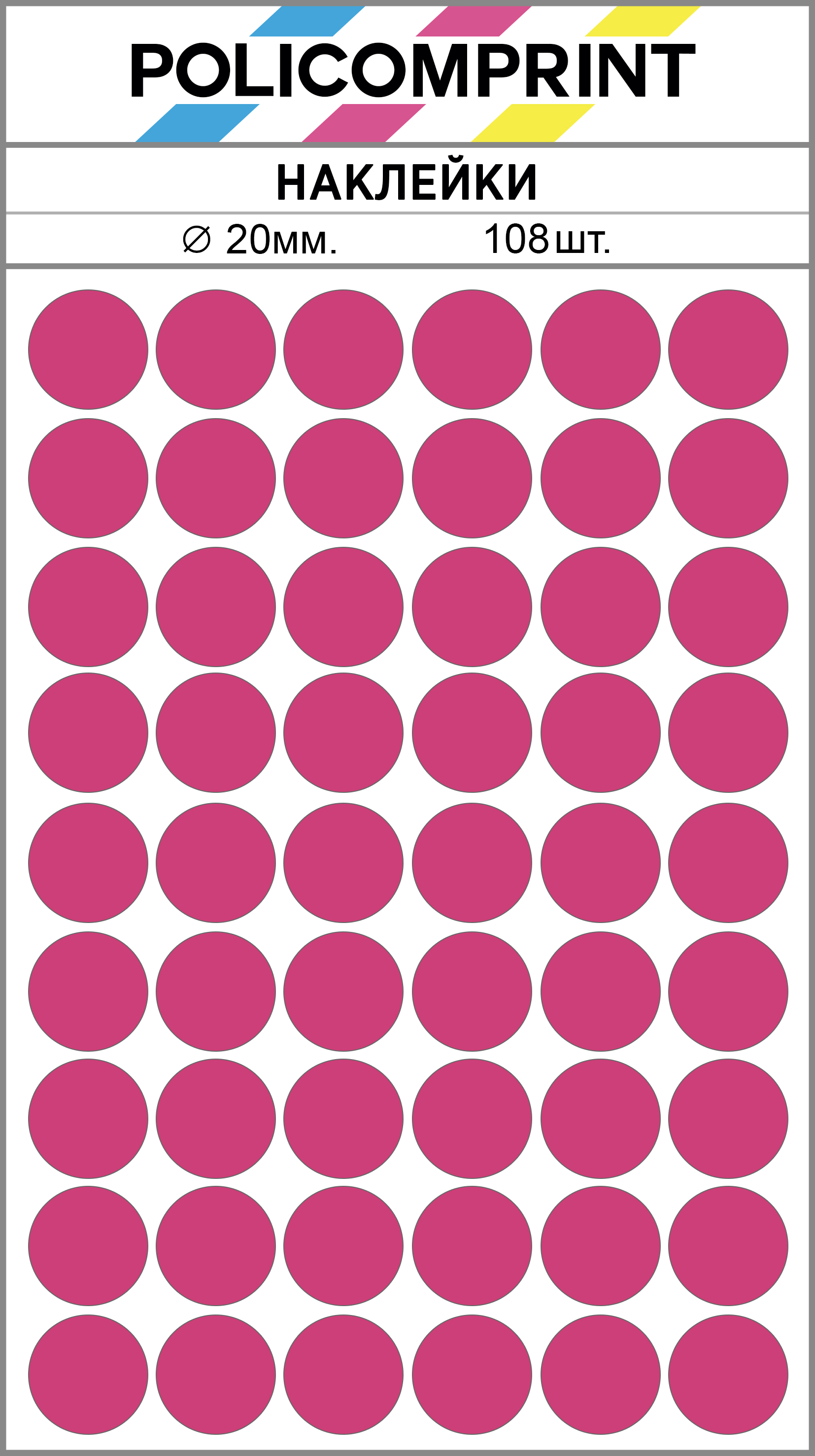 Благодаря своим ярким цветам, наклейки Policomprint легко заметны. Они изготовлены из качественных материалов, что обеспечивает их долговечность и устойчивость к износу.