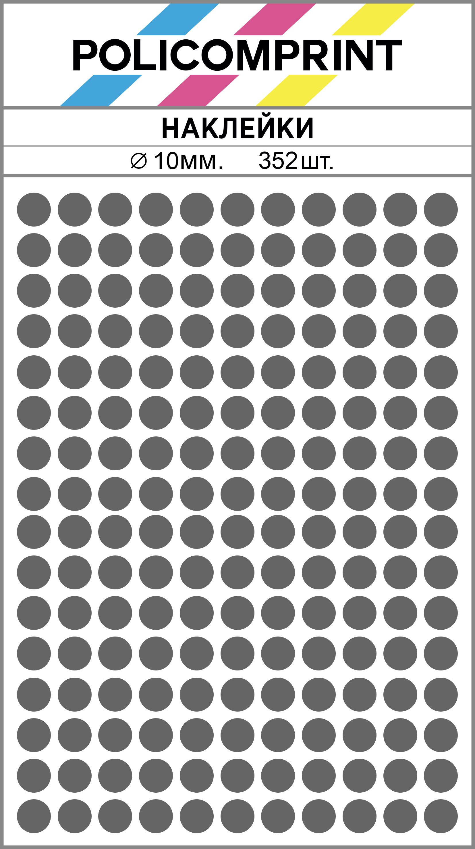 Наклейки Policomprint предназначены для маркировки, организации, планирования и хранения. В упаковке вы найдете 352 маркировочных наклеек в виде круга диаметром 10 мм., которые помогут вам быстро и легко организовать свои вещи.