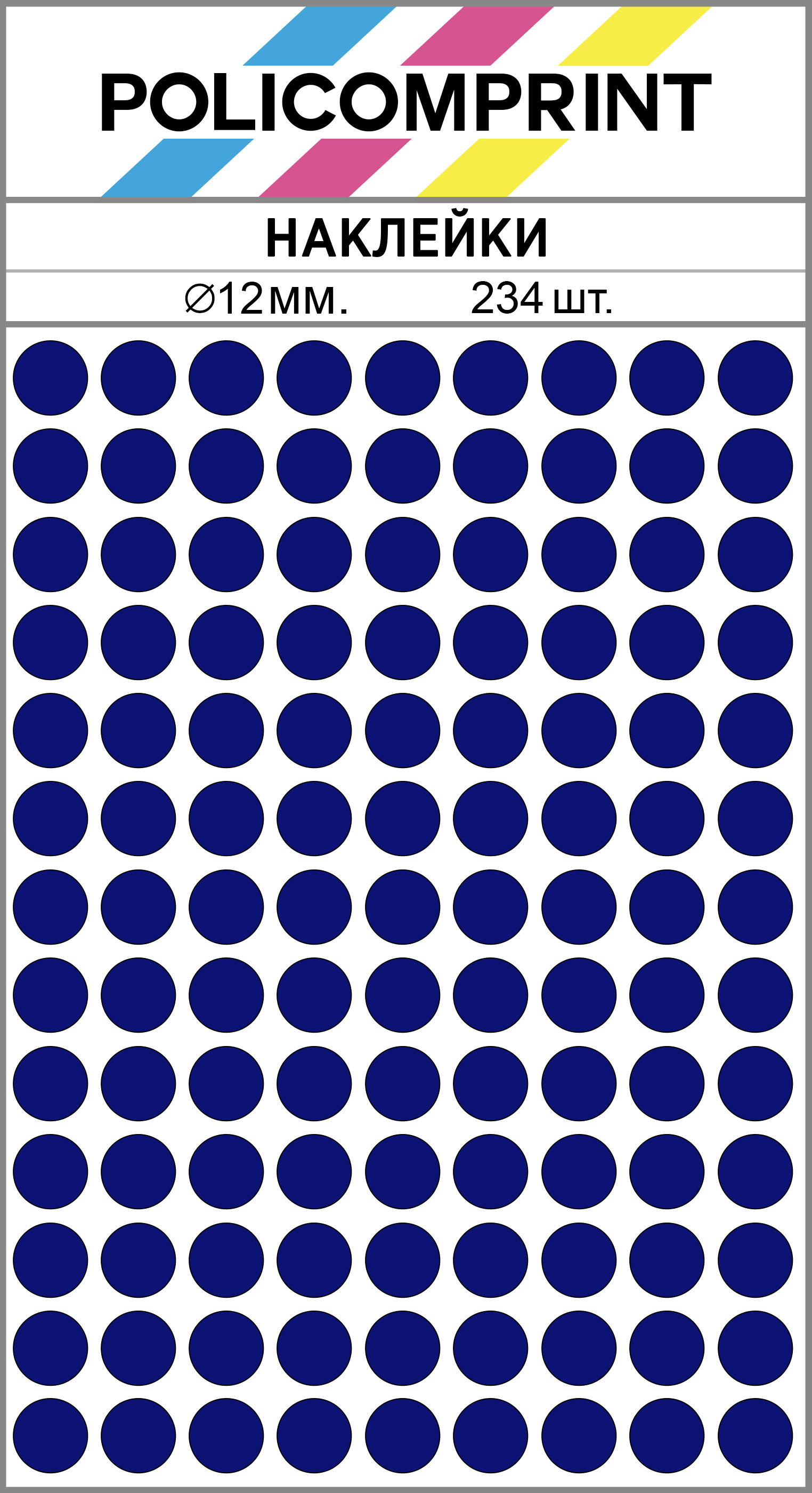 Наклейки Policomprint предназначены для маркировки, организации, планирования и хранения. В упаковке вы найдете 234 круглых маркировочных наклеек диаметром 12 мм., которые помогут вам быстро и легко организовать свои вещи.
