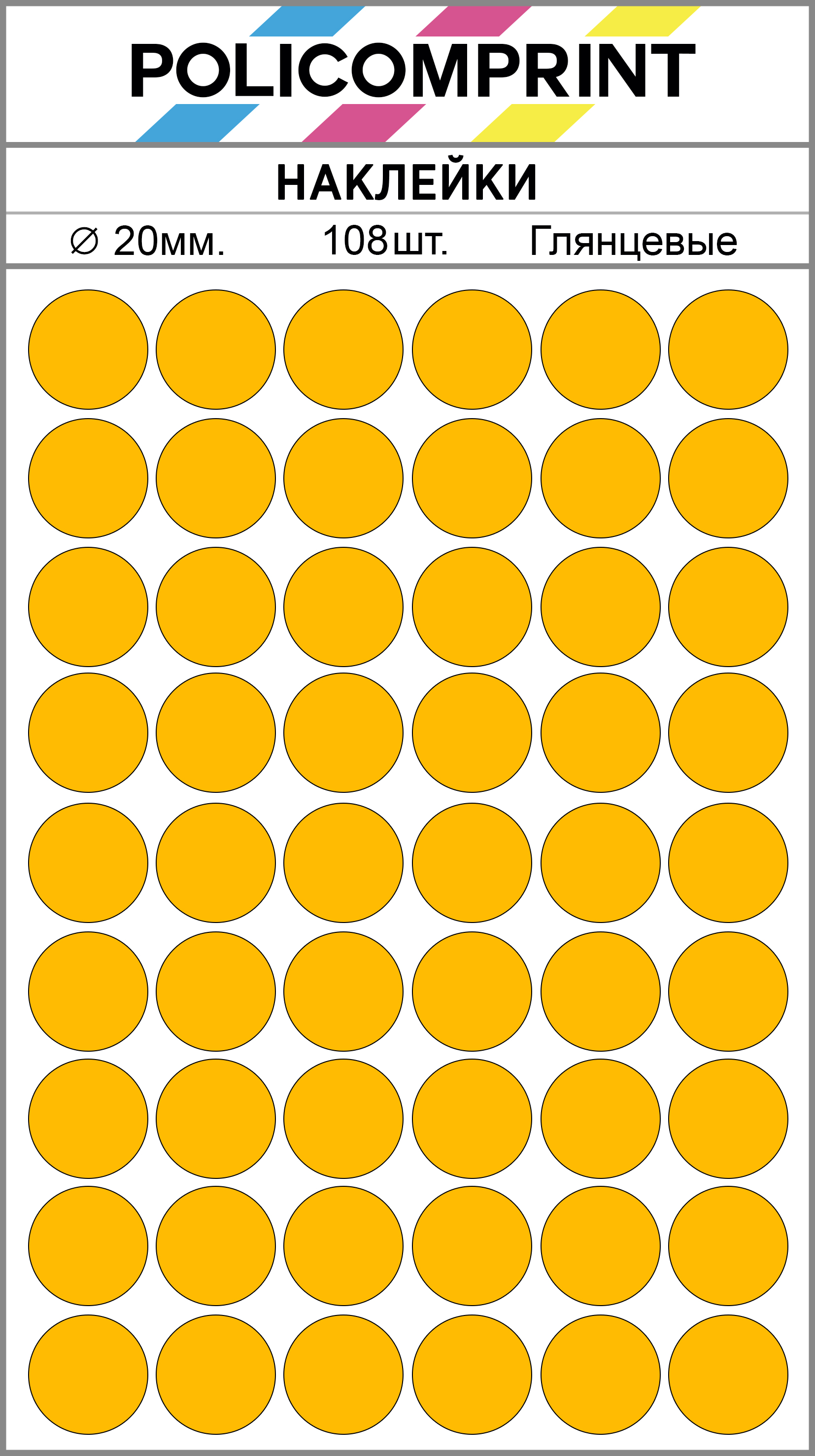 Благодаря своим ярким цветам, наклейки Policomprint легко заметны. Они изготовлены из качественных материалов, что обеспечивает их долговечность и устойчивость к износу.