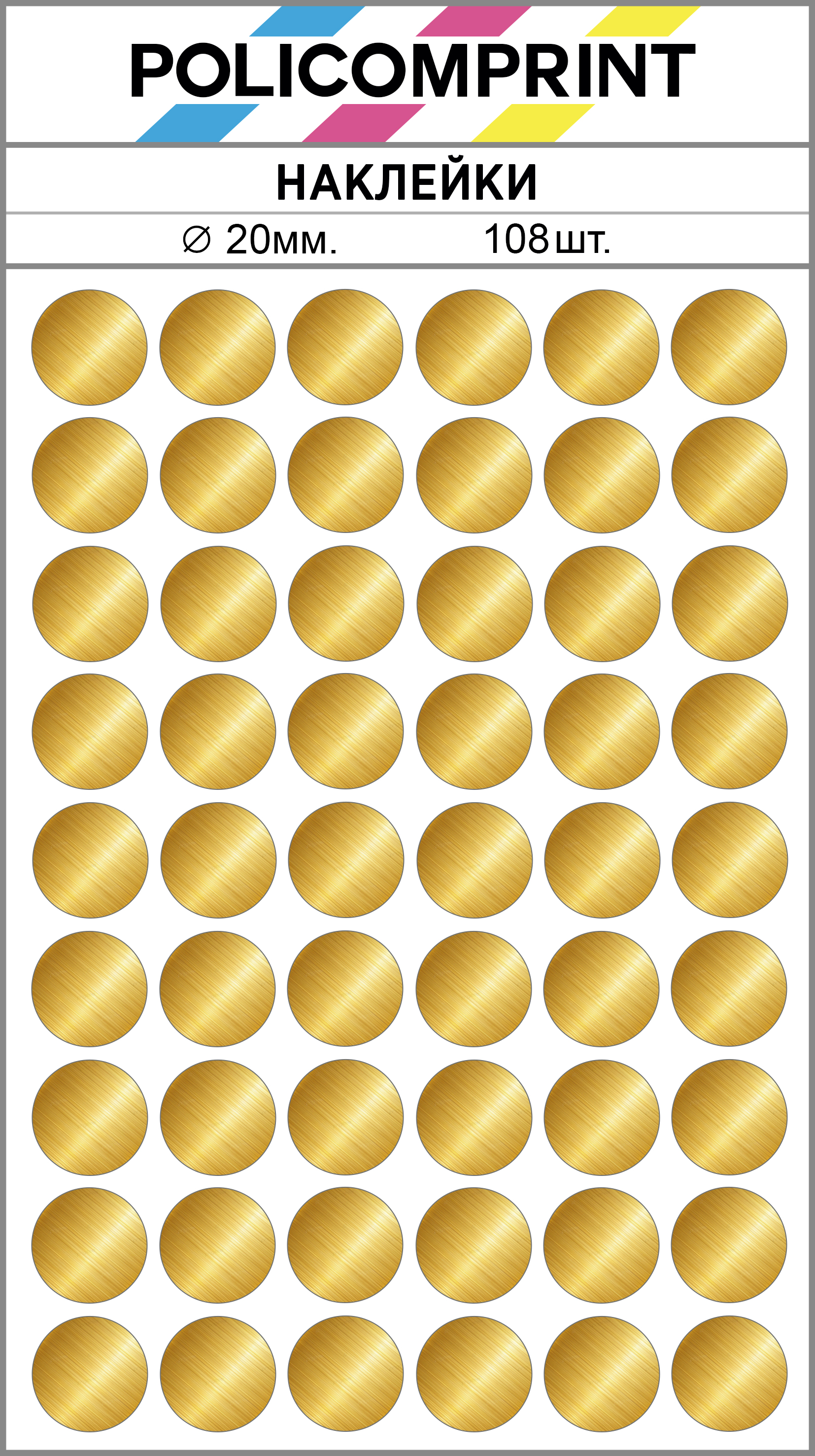 Наклейки Policomprint в виде царапанного золота предназначены для маркировки, организации, планирования и хранения. В упаковке вы найдете 108 круглых маркировочных наклеек диаметром 20 мм., которые помогут вам быстро и легко организовать свои вещи.