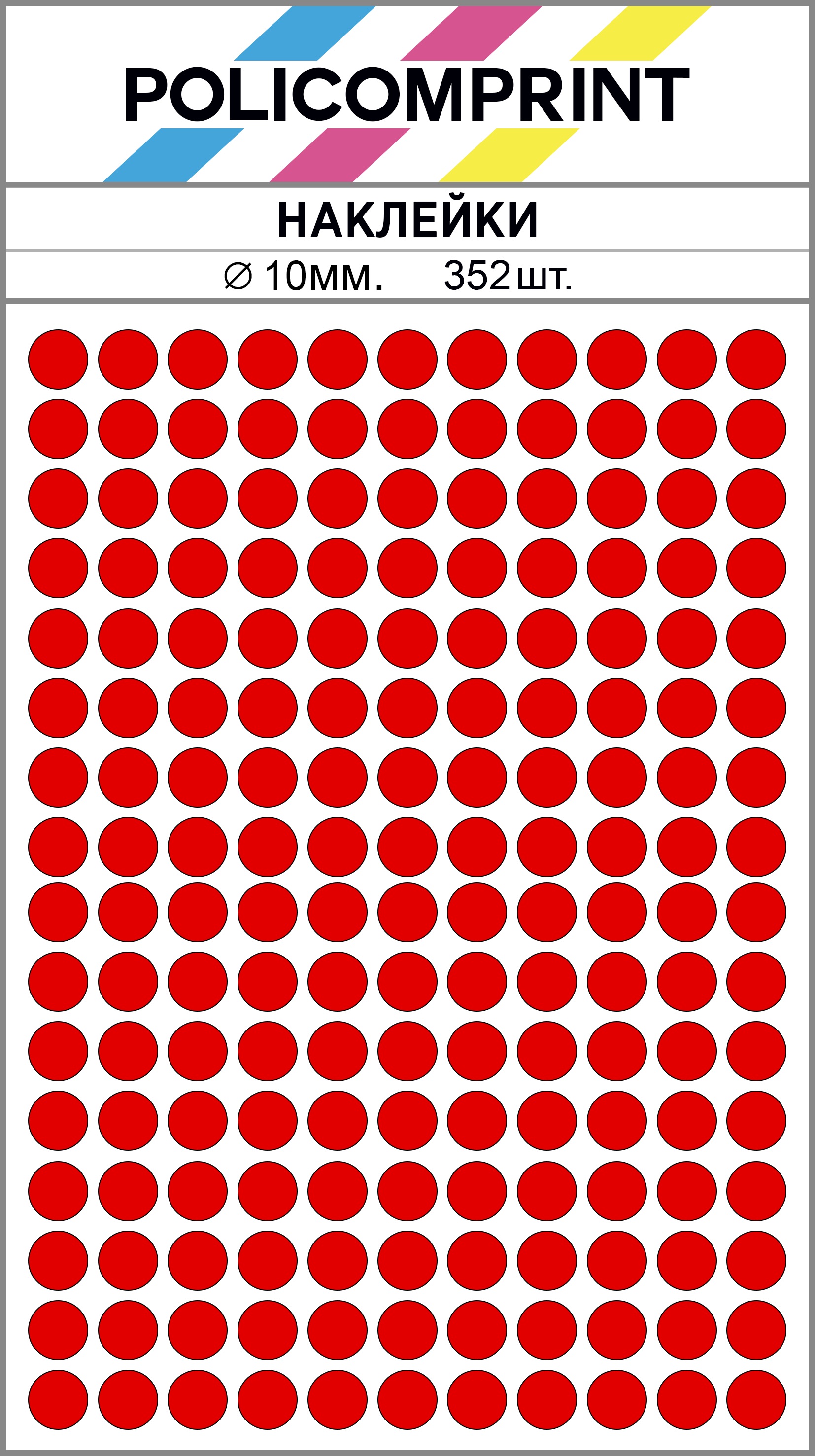 Благодаря своим ярким цветам, наклейки Policomprint легко заметны. Они изготовлены из качественных материалов, что обеспечивает их долговечность и устойчивость к износу.