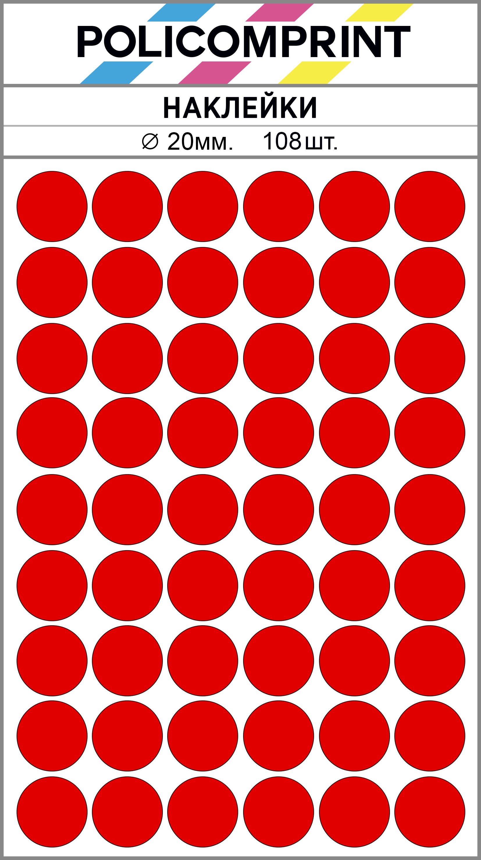 Благодаря своим ярким цветам, наклейки Policomprint легко заметны. Они изготовлены из качественных материалов, что обеспечивает их долговечность и устойчивость к износу.