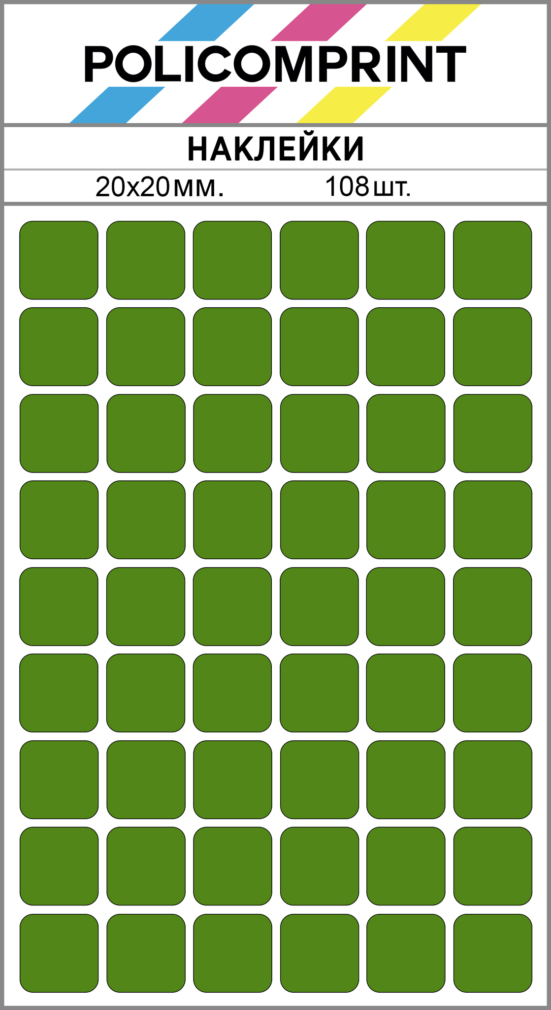 Благодаря своим ярким цветам, наклейки Policomprint легко заметны. Они изготовлены из качественных материалов, что обеспечивает их долговечность и устойчивость к износу.